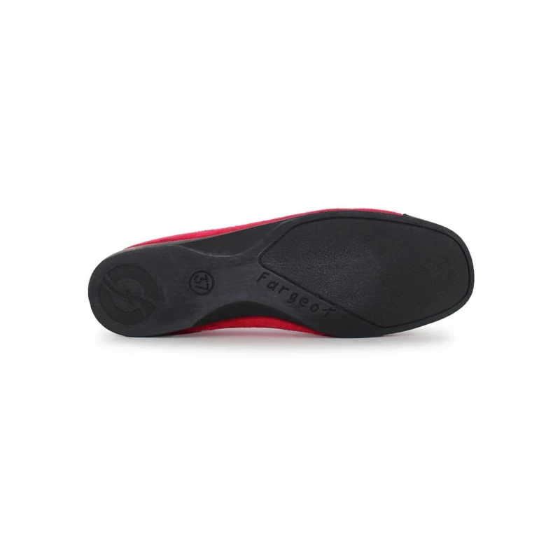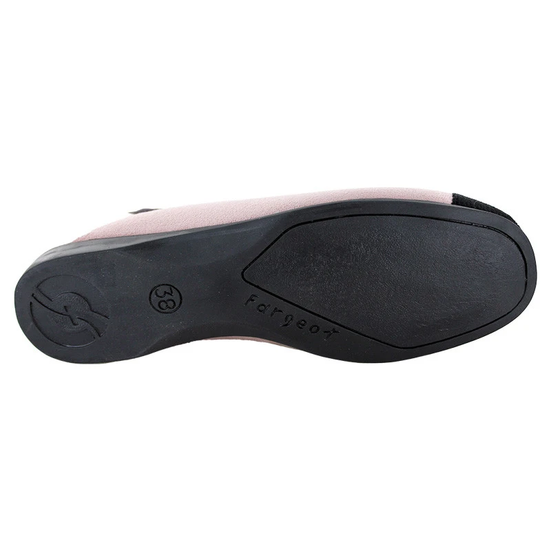 Ravissantes ballerines d’intérieur pour femme de marque Fargeot. Doublées en éponge, elles assurent un confort optimal tout en permettant l’absorption de la transpiration. Un petit talon de 2 cm vient parfaire ces chaussons souples et légers.