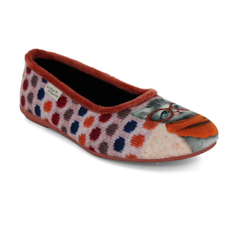 On craque pour les chaussons ballerines 6040 de La Maison de l’Espadrille ! Ces chaussons ornés de petits chats sont tout simplement adorables ! Confortables, souples et parfaits pour vous chausser dans un appartement, ces chaussons femme sont confectionnés en textile velours de qualité et sont montés sur une semelle antidérapante, souple et qui est insonore.