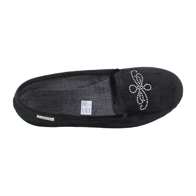 Les chaussons mocassins pour femme de La Maison de l’Espadrille vous séduiront par leur confection. Souples, fantaisies, confortables, conçus en textile velours, ils sont ornés de petits rivets métalliques sur le dessus. Très agréables à porter, ils sont aussi très faciles à chausser et maintiennent bien vos pieds.