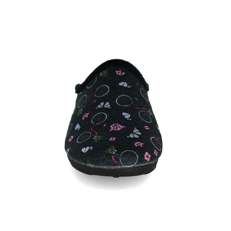 Les chaussons mules pour femme 6971 de La Maison de l’Espadrille sont confortables et faciles à porter à la maison. Confectionnés en textile velours imprimé, faciles à enfiler, ils vous assurent le bon maintien de vos pieds. Ils disposent d’une semelle antidérapante avec talon compensé très agréable.
