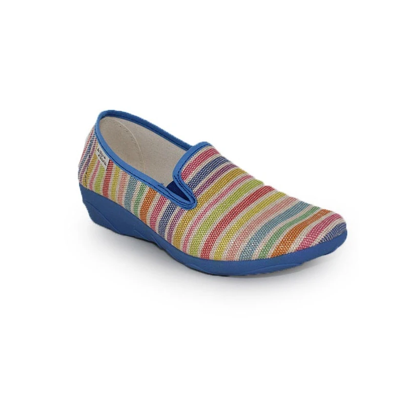 Les chaussons sans gêne pour femme « BAYADÈRE » de La Maison de l’Espadrille sont très agréables à porter et vous chausseront parfaitement à la maison. Montés sur leur talon compensé très stable, ils sont aussi très appréciables pour leur souplesse et leur confort, et leur facilité à vous chausser grâce à leurs deux élastiques d’aisance sur les côtés.