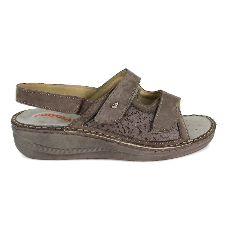 Parfaitement conseillées pour les pieds sensibles et déformés, les sandales Velcro pour femme VICENZA de la marque PODOLINE sont confectionnées en textile extensible sur les cotés. Ainsi, vos orteils douloureux se positionnement parfaitement sans souffrir de frottement et de compression pendant la marche.