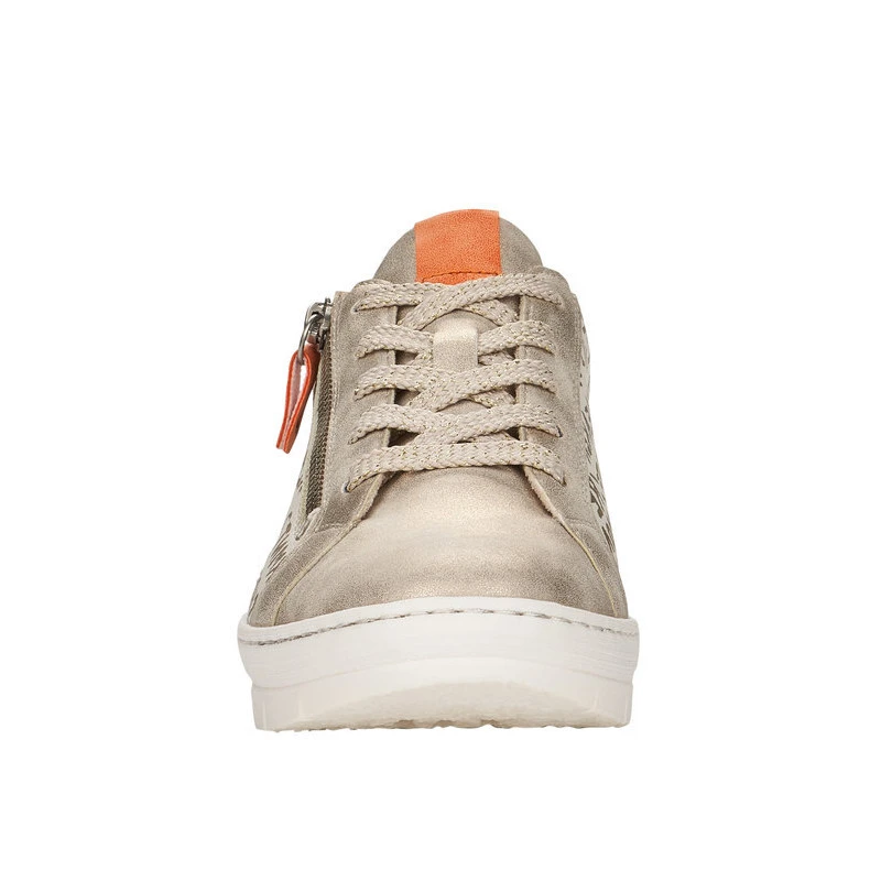 Ultras légères et très confortables, les baskets basses fantaisies pour femme D5821 de la marque REMONTE se portent à toute heure de la journée ! Faciles à chausser grâce à leur zip coté extérieur, après un premier laçage d’ajustement à chaque pied, vous ne quitterez plus vos baskets en cuir coloré !