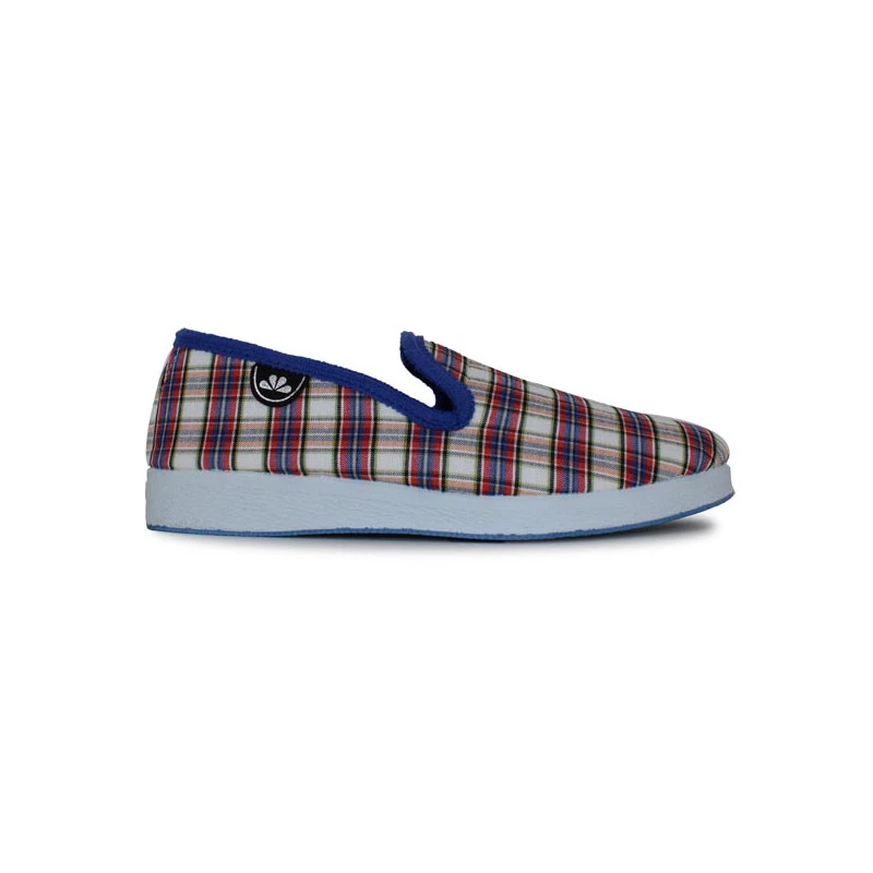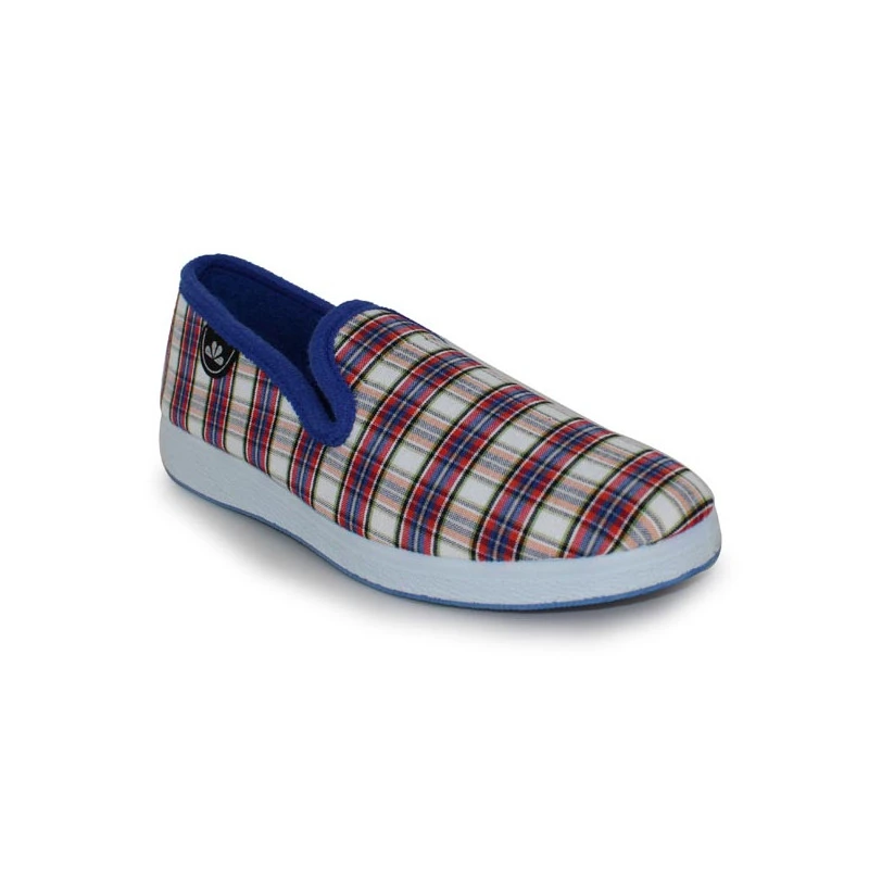 Voici une version modernisée et estivale de la charentaise pour femme ! Les charentaises SUPER SARA de la marque SEMELFLEX vous chausseront très agréablement à la maison comme dans le jardin ! Proposées en textile écossais et doublées en textile très agréable, elles sont montées sur une épaisse semelle en caoutchouc, robuste et antidérapante.