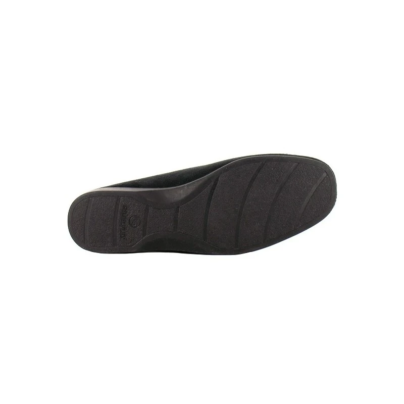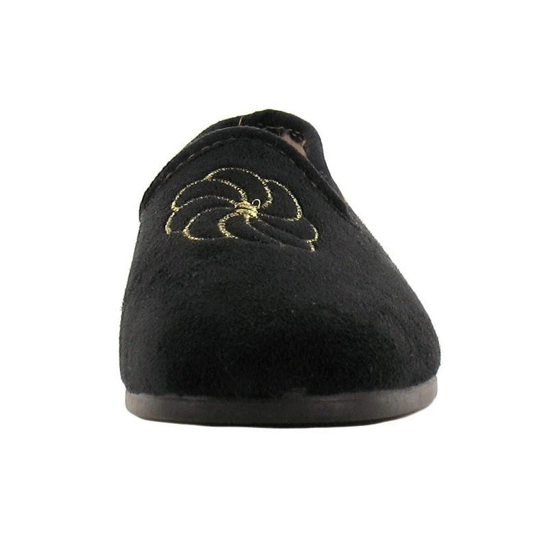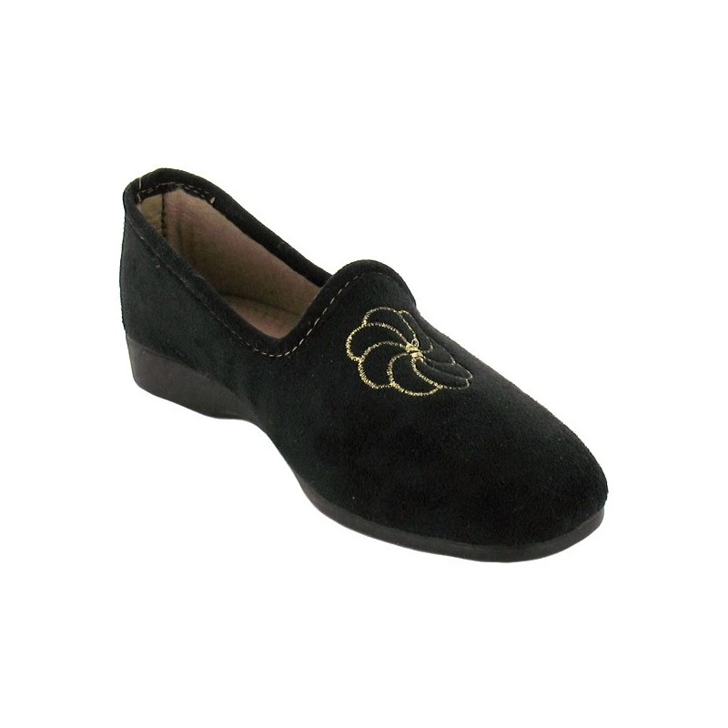 Daisy de Semelflex est une jolie pantoufle qui vous séduira par son confort et sa souplesse. Confectionnée dans un textile très doux, elle vous assure un port agréable. La semelle de caoutchouc bien flexible est antidérapante et le petit talon de 2 cm bien stable. Habillée de noir, cette pantoufle est ornée d’une broderie dorée pour un résultat très élégant.