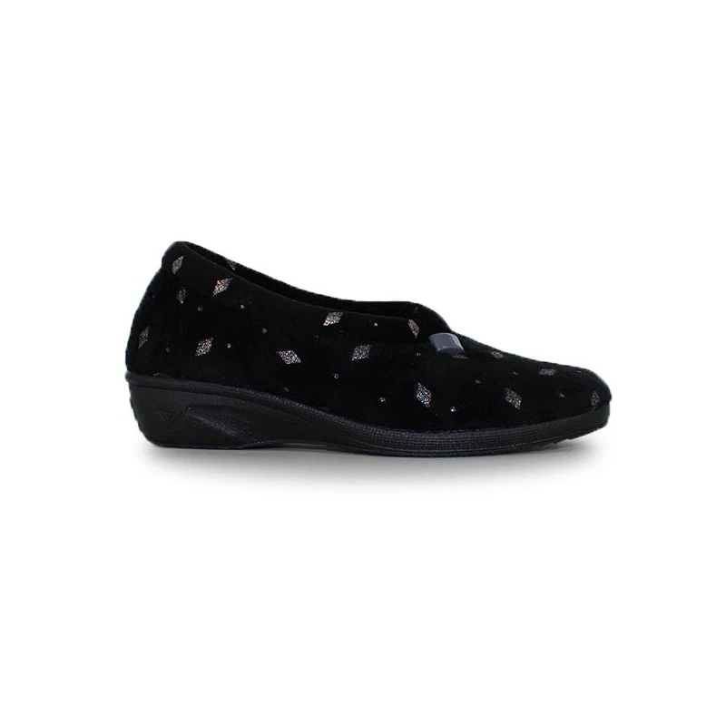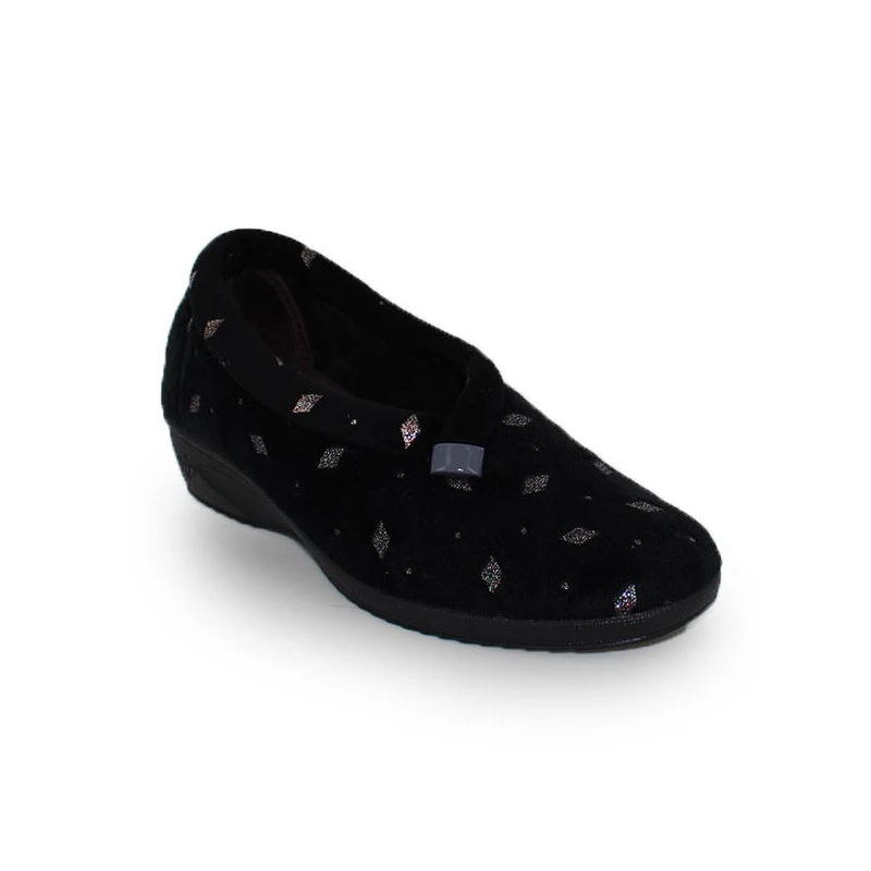 Les chaussons femme CAROLE de la marque SOIR et MATIN, parfaitement conseillés pour les personnes à la recherche de confort et souplesse, sont proposés en textile velours. Ils sont entièrement matelassés. Vous apprécierez la souplesse de leur semelle extérieure en caoutchouc, montée sur un petit talon bien stable.