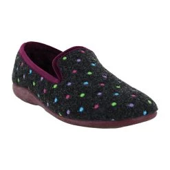 Faciles à enfiler, confortables et conseillés pour les pieds larges, les chaussons femme DIAPASON de la marque SOIR et MATIN vous chausseront agréablement à la maison. Proposés en textile velours très souple et munis de deux élastiques d’aisance, ils sont faciles à enfiler. Ils offrent un confort de marche optimal et disposent d’une semelle extérieure très souple en caoutchouc, montée sur un petit talon bien stable.