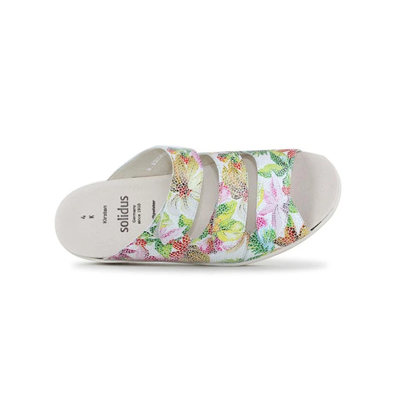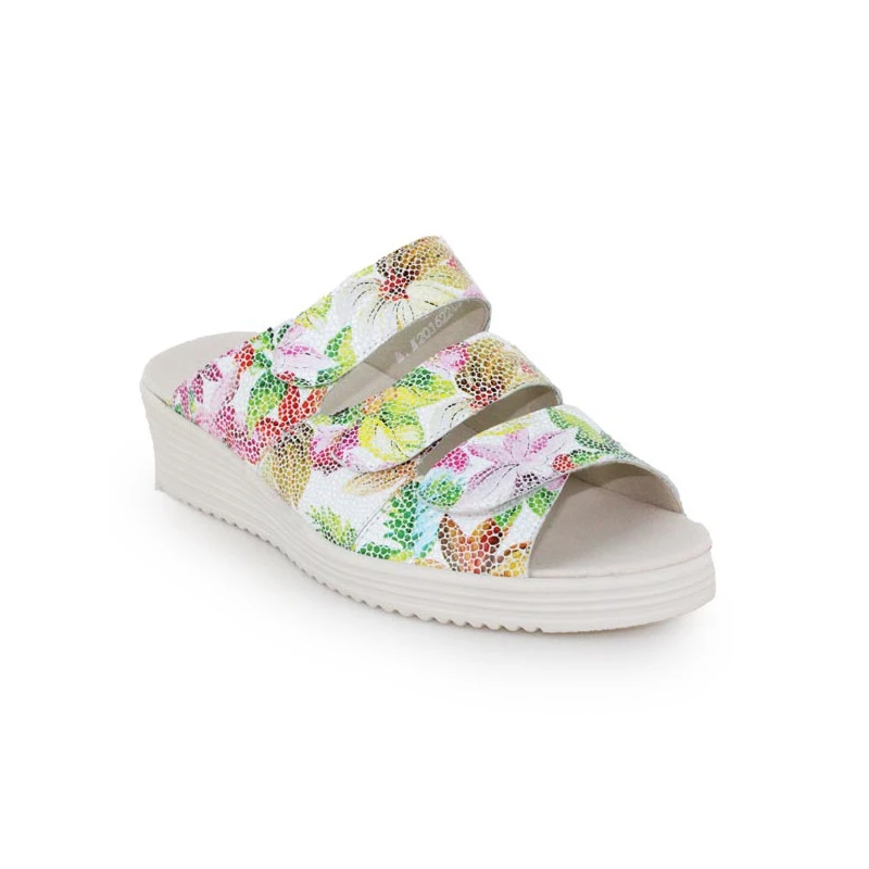 Idéales à ajuster à chacun de vos pieds grâce à leurs trois brides Velcro, les mules Velcro KIRSTEN 50003 de la marque SOLIDUS sont aussi parfaitement adaptées pour les pieds très larges. Disposant d’un très agréable talon compensé très stable, vous vous assurez un véritable confort de marche au quotidien. Vous apprécierez aussi ces mules femme pour la qualité des matières proposées et par leur confection. De plus, elles disposent d’une semelle intérieure amovible avec soutien plantaire en composite et matelassage sous points de pression.