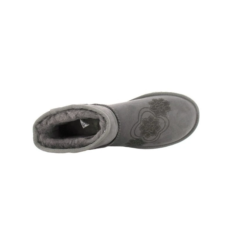 Hiver comme été, vous apprécierez le confort que vous procurera cette paire de bottines de la marque Ugg ! Fourrée laine de mouton, cette botte possède la propriété de réguler la température de vos pieds : ainsi, si vos pieds sont froids, elle vous réchauffera, mais ne vous chauffera pas plus que de rigueur si vos pieds sont déjà chauds ! Finement décoré sur le coup de pied, ce modèle vous plaira tout au long de l’année !